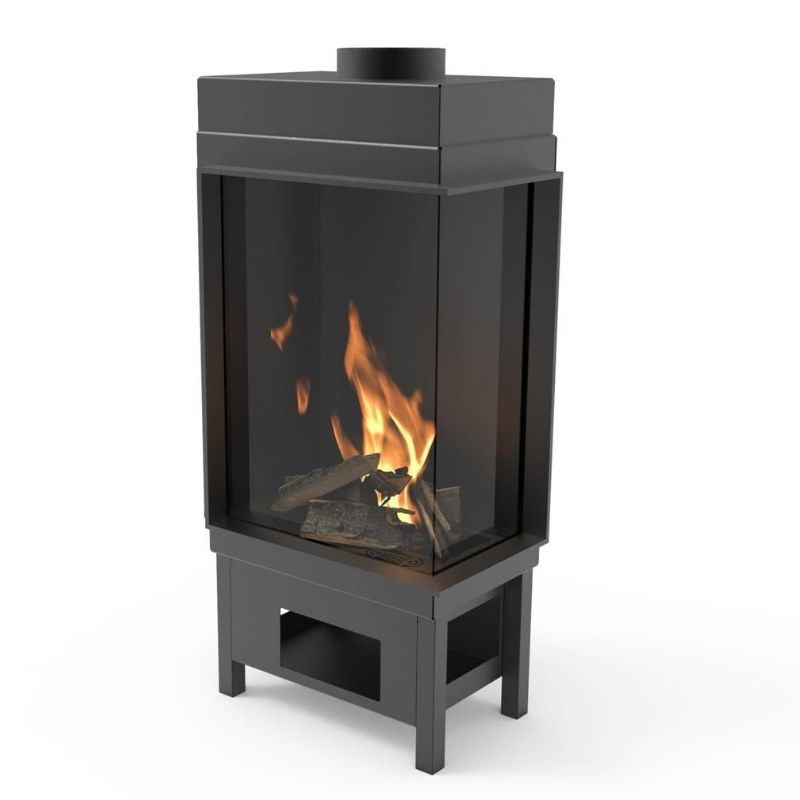 Insert à Gaz IG5070 L VR, 2 faces vitrées, possède une porte à ouverture latérale pour une large vision du feu. Foyer au format vertical.